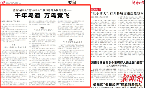 蓝山县探索建立政府引导、社会参与的长效护鸟机制,通过就业创业扶持、严厉打击非法猎捕等有力举措,千人上山打鸟的陋习如今不再。