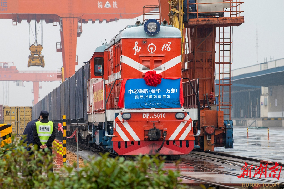 2022年1月6日,中老铁路通车后由中部地区发出的首趟中老国际货运列车从怀化发车,驶向老挝万象。当年4月12日,中老铁路“万象—怀化”国际货运班列抵达怀化国际陆港,怀化成为中部地区首个实现中老班列双向开行的城市。