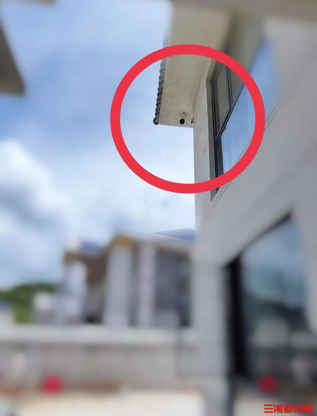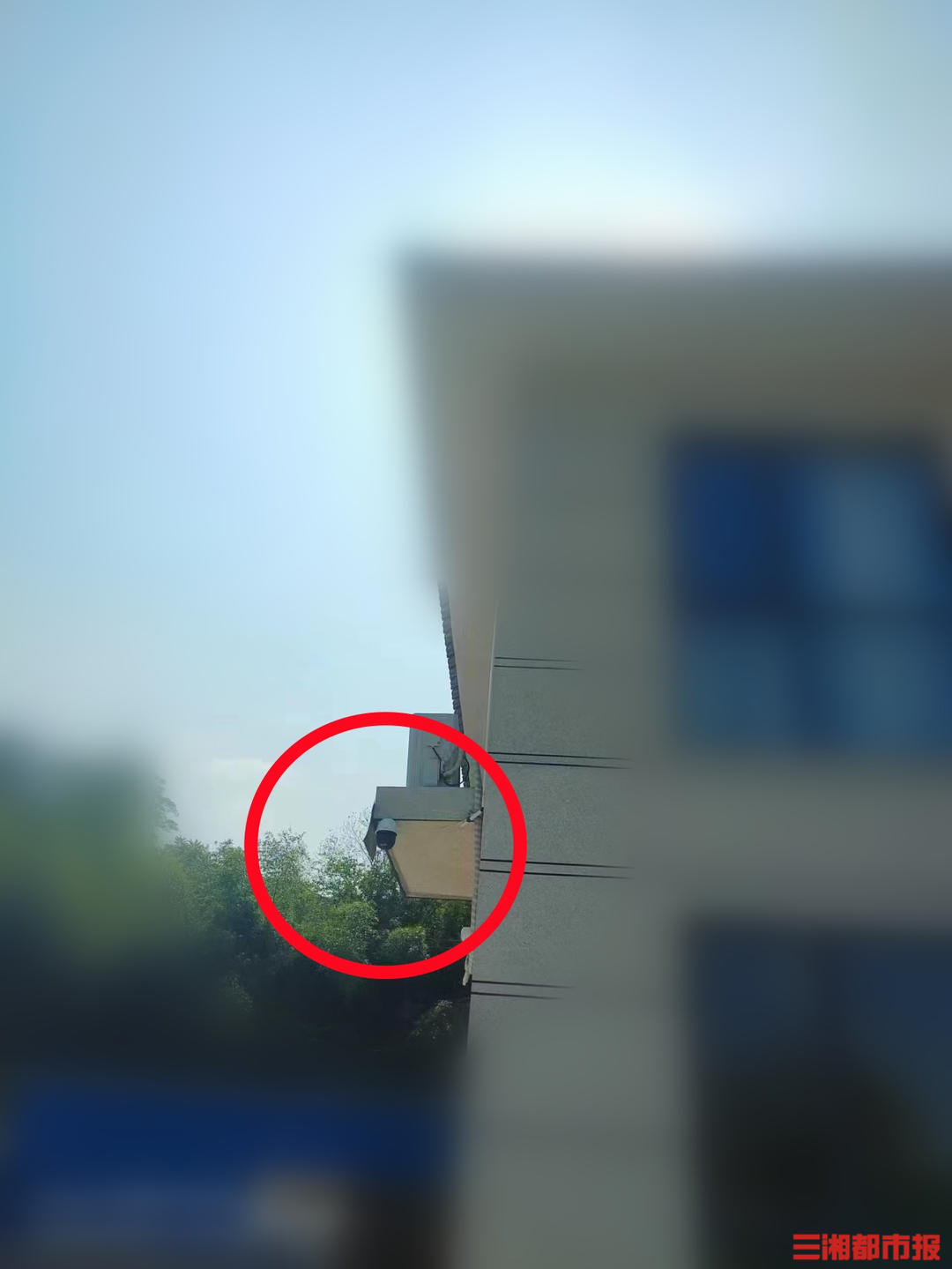 (监控设施原本安装在二楼屋檐,位置较高。)