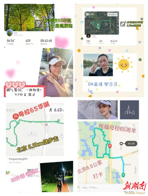 在 9月18日至28日期间,北京校友会还组织在京校友开展了“6.5公里健身锻炼”活动,校友们自行选择跑步、健步走、骑行等多种运动形式,完成6.5公里健身打卡祝福母校办学65周年。活动完成以“6.5锻炼公里数截图+自拍照+对母校的一句话祝福+校友署名”形式体现,参与活动的校友将上述内容设计完成后发送校友群,由校友会负责搜集汇总。截至活动结束,共收到了数十位校友的活动祝福。