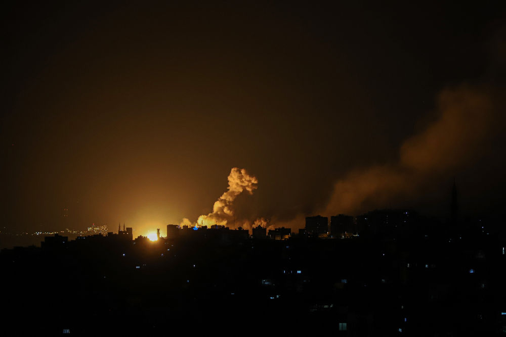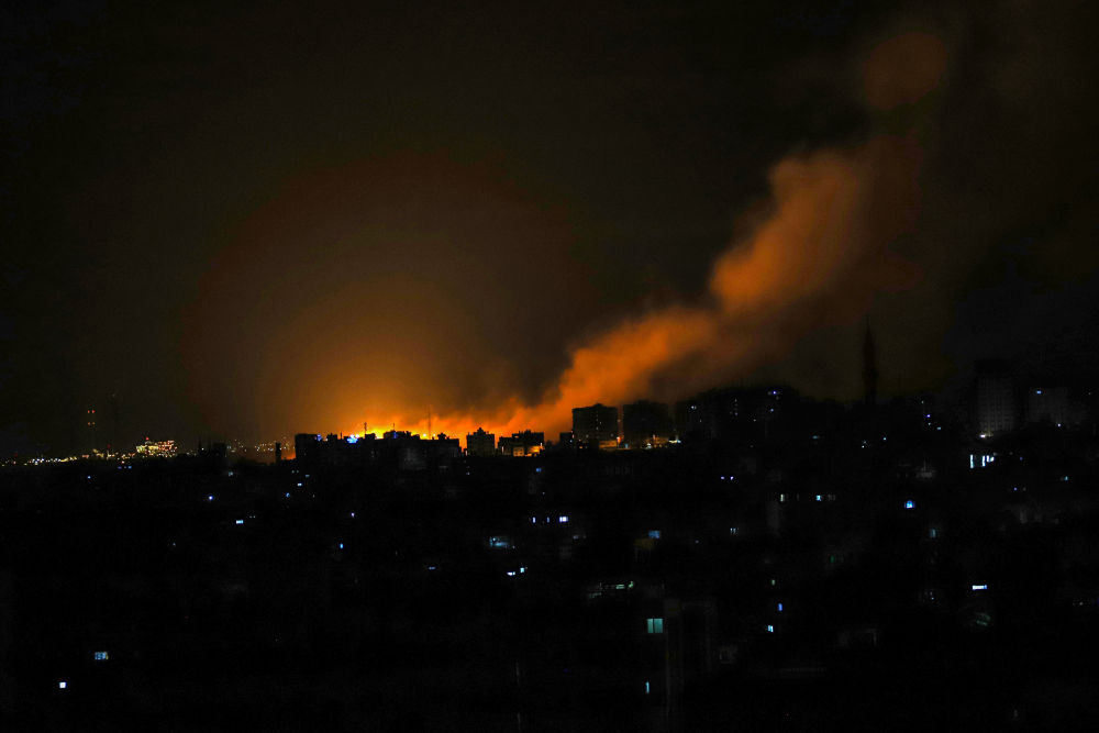 ↑10月11日凌晨,加沙城的建筑遭以色列空袭后升起浓烟。新华社发(里泽克·阿卜杜勒贾瓦德摄)
