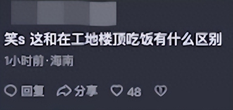 对于该空中餐厅,网友褒贬不一。有网友吐槽,“这跟在工地楼顶吃饭有什么区别。”