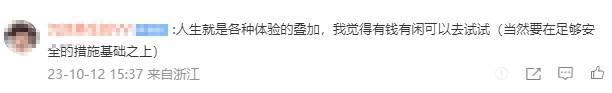 也有网友表示,“人生就是各种体验的叠加,我觉得有钱有闲可以去试试,当然要在足够安全的措施基础之上。”