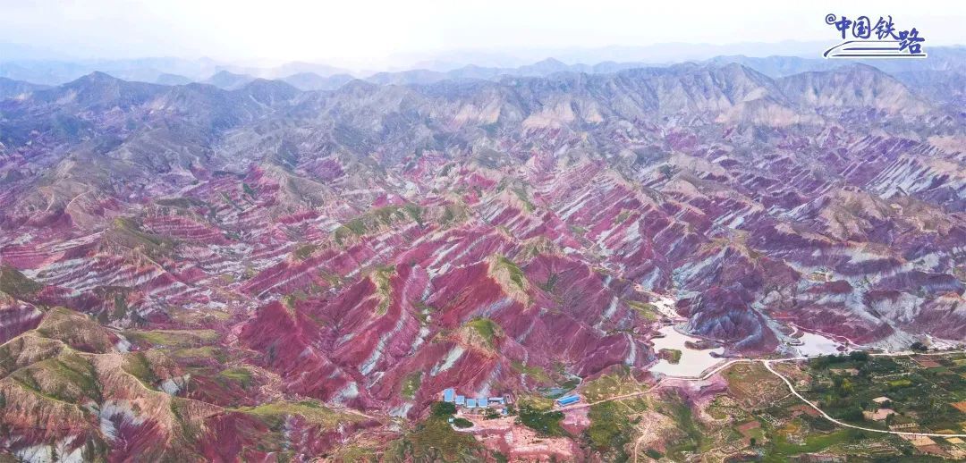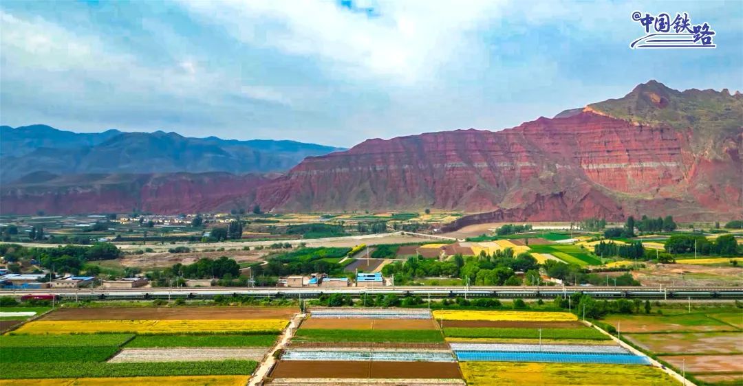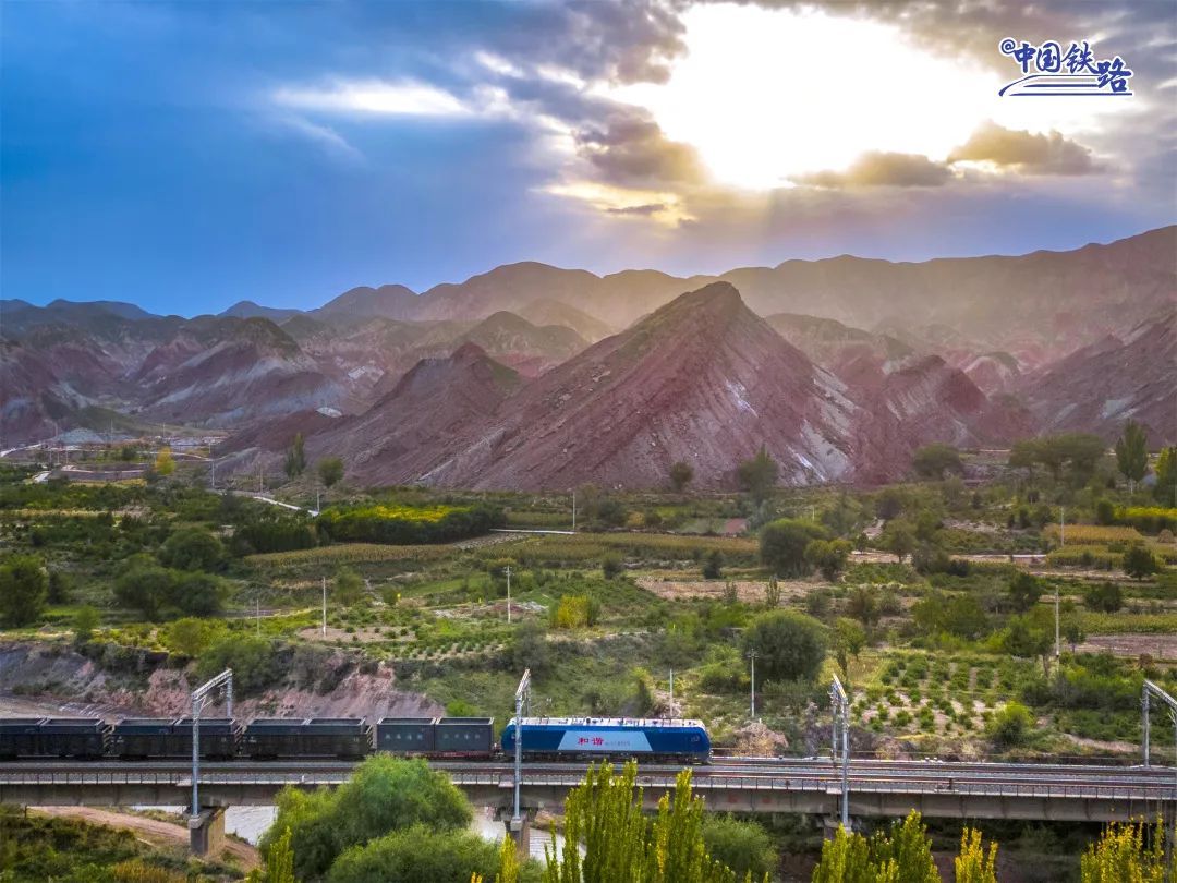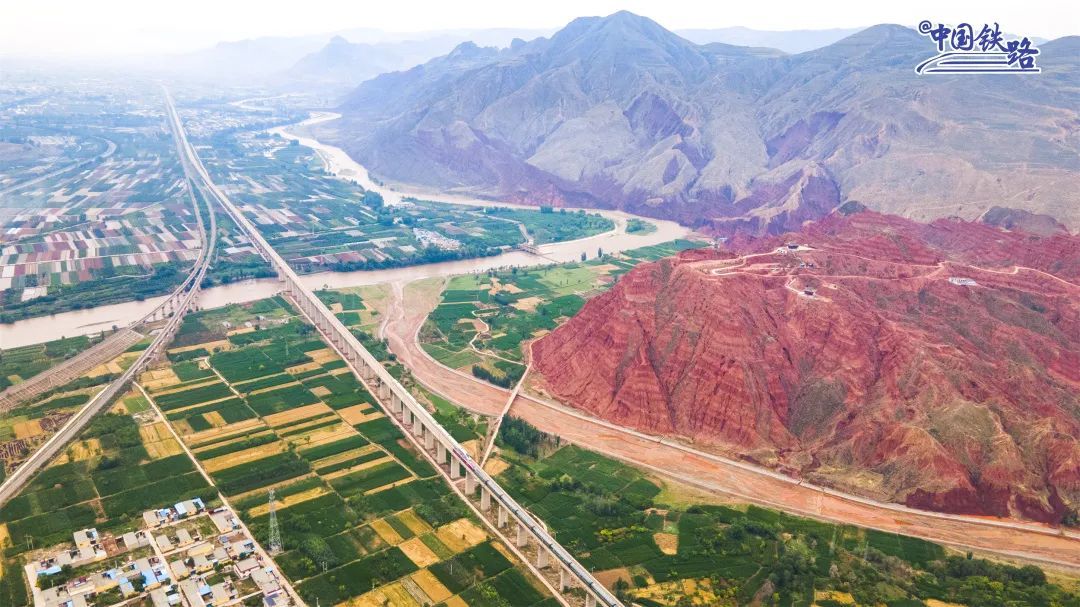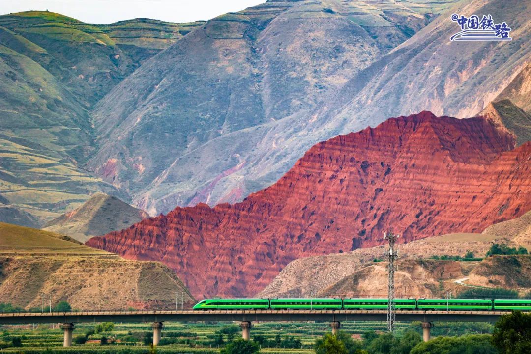 列车沿着兰新高铁从兰州西站开出后约20分钟,便到了兰州市红古区。车窗外的丹霞地貌十分引人注目,山脉峰岭红如烈火,灿若余晖,与远处的青山相互掩映。