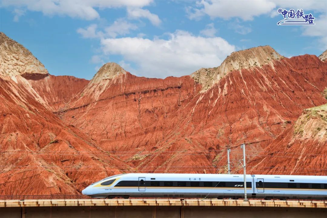 兰新高铁全长1786公里,东起兰州,途经青海西宁后穿越河西走廊,经张掖、嘉峪关后入疆。兰新高铁穿越河西走廊山川草甸、大漠戈壁。这条世界上一次性建成里程最长的高铁也被众多旅客称为“最美高铁”。