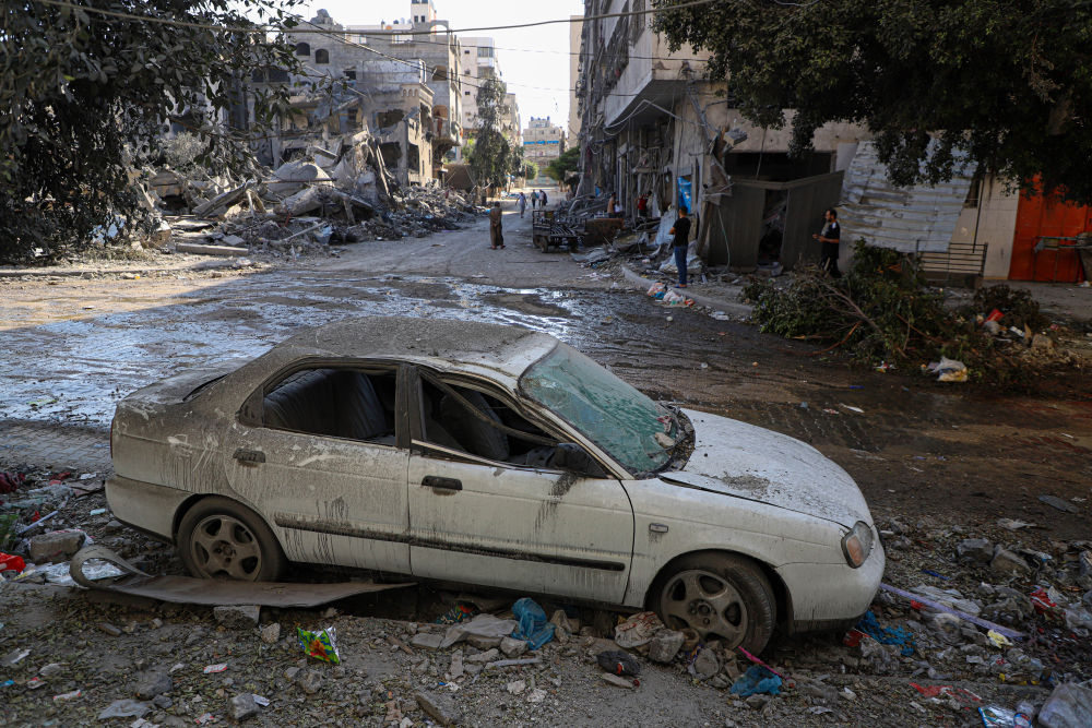 ↑这是10月12日在加沙城拍摄的一辆被以色列军队空袭炸毁的汽车。新华社发(里泽克·阿卜杜勒贾瓦德摄)