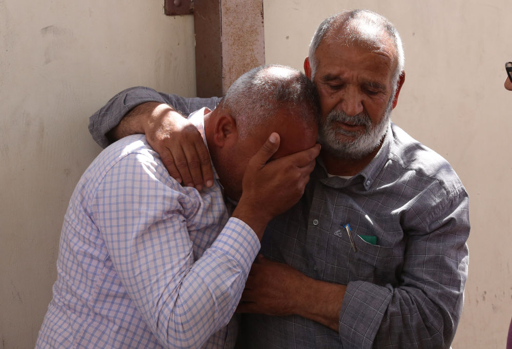 ↑10月12日,在约旦河西岸城市纳布卢斯的一家医院,在巴以冲突中失去亲友的人们掩面哭泣。新华社发(尼达尔·艾仕塔耶摄)