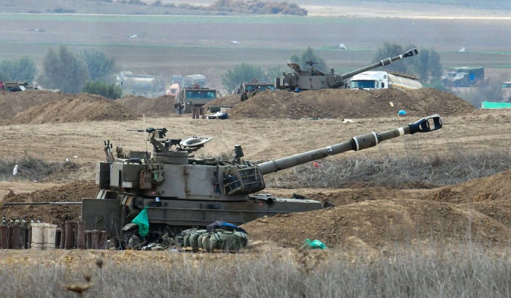 ↑这是10月12日在加沙边境以色列一侧拍摄的集结的以军部队。新华社/基尼图片社