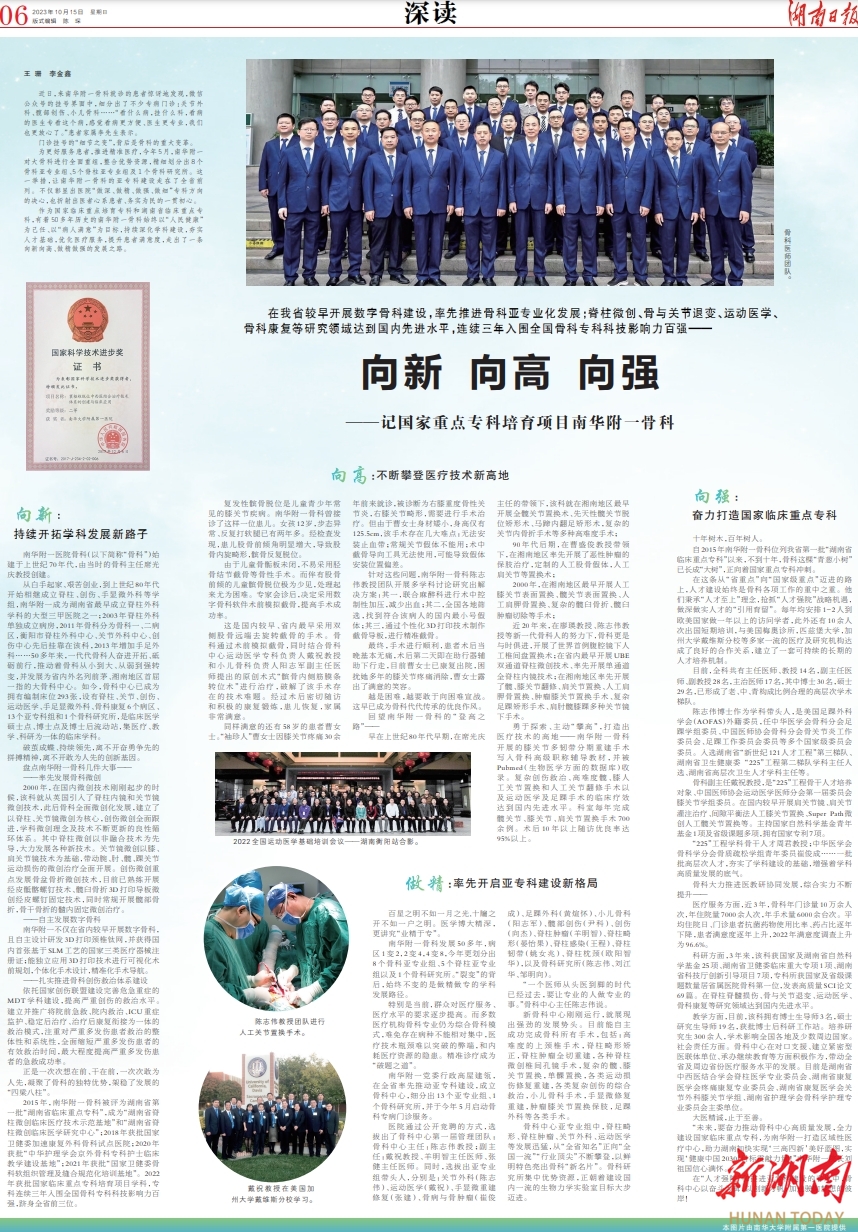 “未来,要奋力推动骨科中心高质量发展,全力建设国家临床重点专科,为南华附一打造区域性医疗中心,助力湖南加快实现‘三高四新’美好蓝图,实现‘健康中国2030’目标贡献力量!”南华附一院长刘祖国信心满怀。