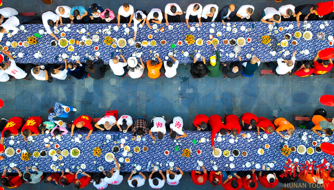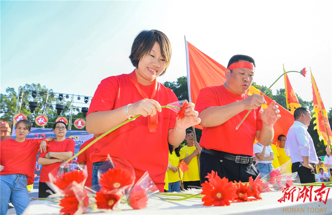 尝新米、打糍粑、吃长桌宴、看红色大剧、赏焰火晚会……此次分会场以“赏红色大剧·品秋收美食”湘赣边尝新节活动为主线,内容丰富、形式多样,分为农民趣味运动会、长桌宴、红色剧目汇演三个板块,邀请部分湘赣边村民、退伍军人、观光游客等齐聚一堂参加尝新节,分享丰收喜悦,赓续秋收精神。