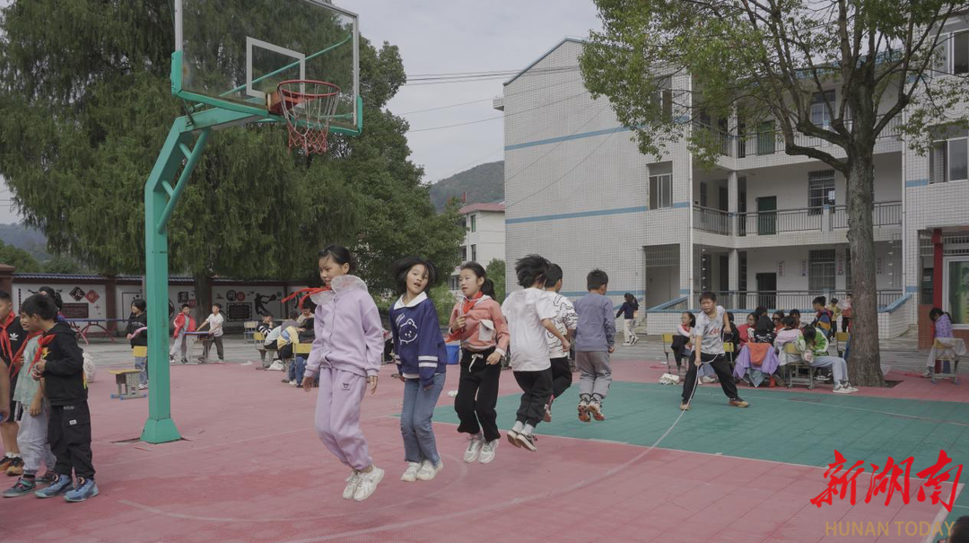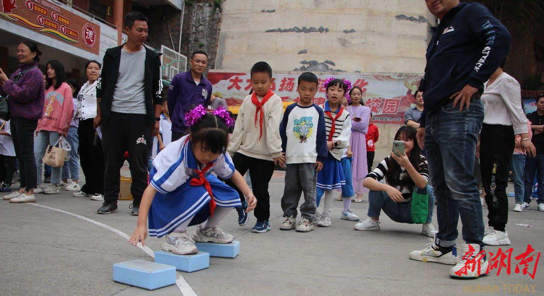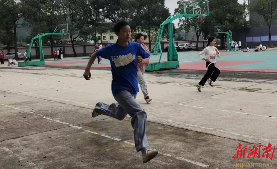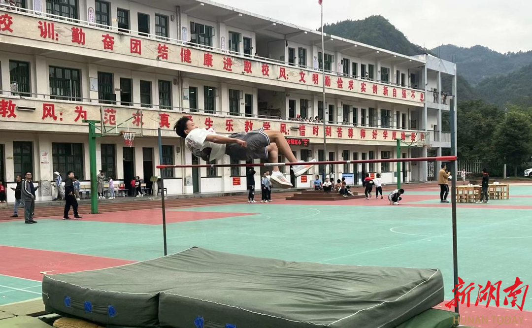 新晃县思源实验学校的急行跳远比赛中,只见一名女运动员稳了稳情绪,站到起跳线前,助跑、起跳、腾空、落地……一套动作如行云流水,一气呵成,在同学们的齐声喝彩中跳出了4米2的好成绩。