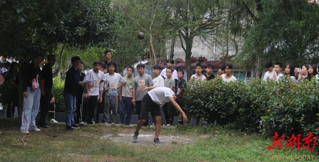 “哇!”一颗铅球高高飞起,撞向草地,砸出了一个浅坑,也砸出一片惊叹。贡溪镇中学的操场上,围观了60米冲刺的同学们刚刚转移战场,就被一颗腾飞的铅球抓住了目光。同学们高声呐喊加油鼓劲;老师们趁机点评传授技巧。体育的魅力在惊叹中传递;体育的精神在掌声里传扬。