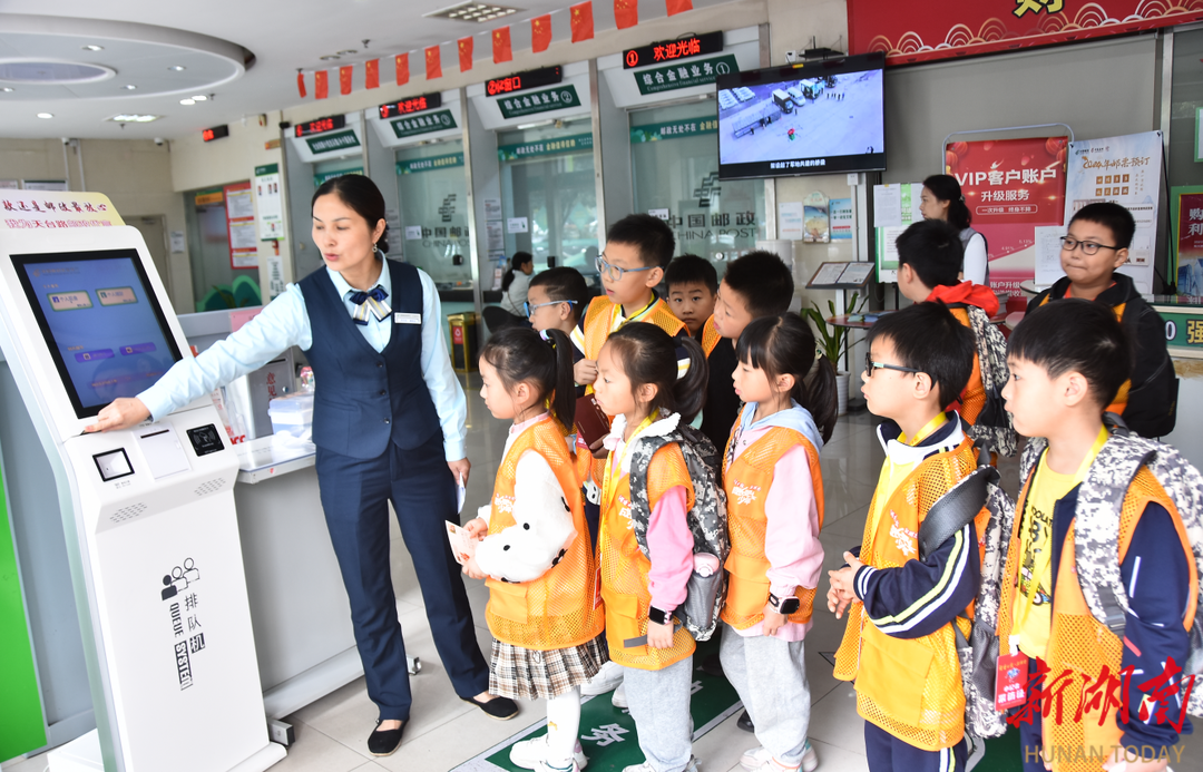 株洲邮政金融板块主营业务有储蓄存款、代理保险、基金理财、邮政汇兑、消费贷款等。同时,提供机要通信和义务兵通信等邮政特殊服务。在邮储银行营业厅,孩子们排着队跟随支行长全面了解银行的基本功能,从门口取票机、大厅办理业务窗口、自动存取款一体机,孩子们都认识并掌握了使用方法,“小小银行家”金融知识小课堂上,孩子们不仅明白了储蓄的真正意义,而且对拥有一张自己的储蓄卡充满期待,争做自己的“理财小管家”。
