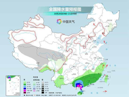降雨最强时段将集中在明后天,尤其在后天,南下的冷空气和台风北侧倒槽结合,充沛的水汽条件叠加动力抬升,以及冷暖空气交汇产生的对流能量,可能使得广西东南部和广东雷州半岛等局地出现大暴雨。21日起,海南的降雨减弱,但广东西部、广西中东部强降雨仍将持续,22日才会逐渐减弱。上述地区公众需高度警惕持续强降雨可能引发的次生灾害,以及对交通运输等方面的不利影响。