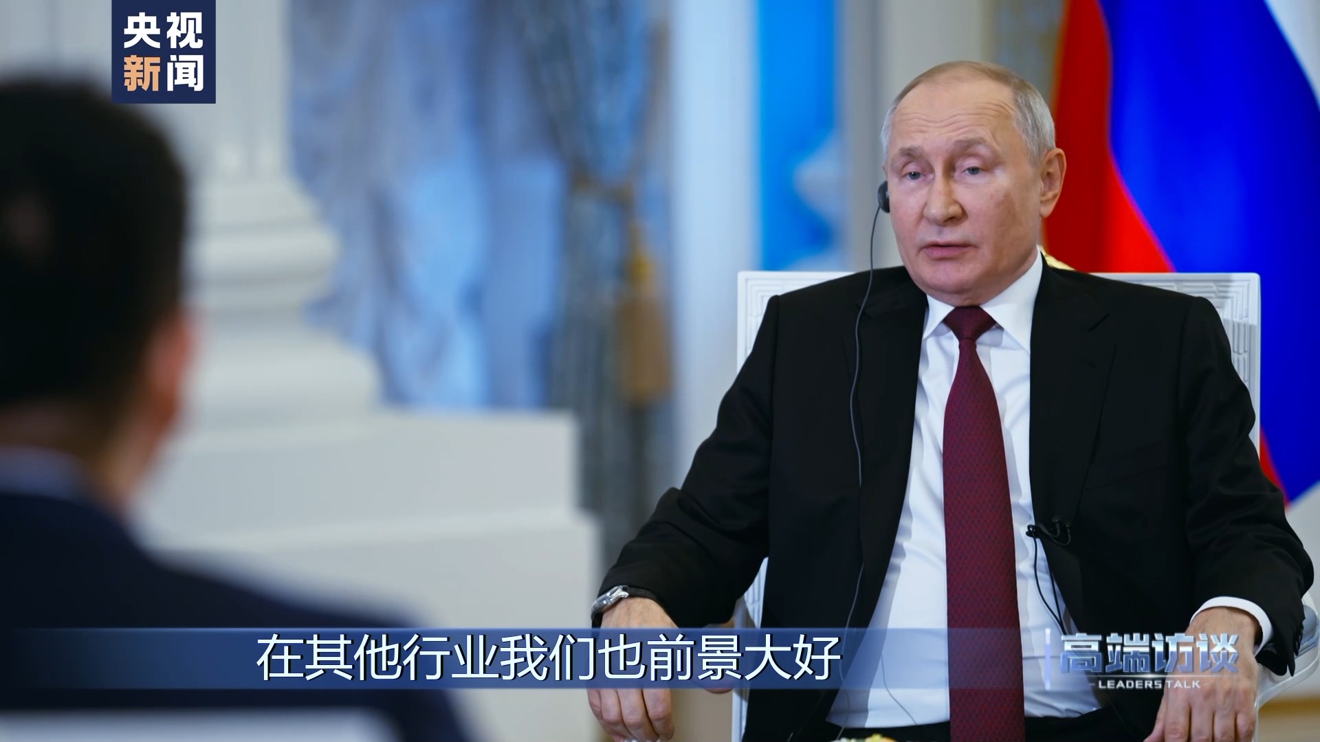 王冠:普京总统,您说到了中俄贸易,之前双方制定的目标是在2024年达到2000亿美元的水平,这将是历史的新高。但我们注意到,其实在2022年双边的贸易额就已经接近这个数字。这是我们第二次来莫斯科,我们看到了很多变化。在莫斯科的街上,在商店里面,在网络购物平台上,有越来越多的中国品牌和商品。反过来,俄罗斯的天然气也正在进入中国的千家万户。中国越来越多的超市里可以买到俄罗斯的牛奶、乳制品、牛排。您如何看待中俄经贸关系增长的潜力?