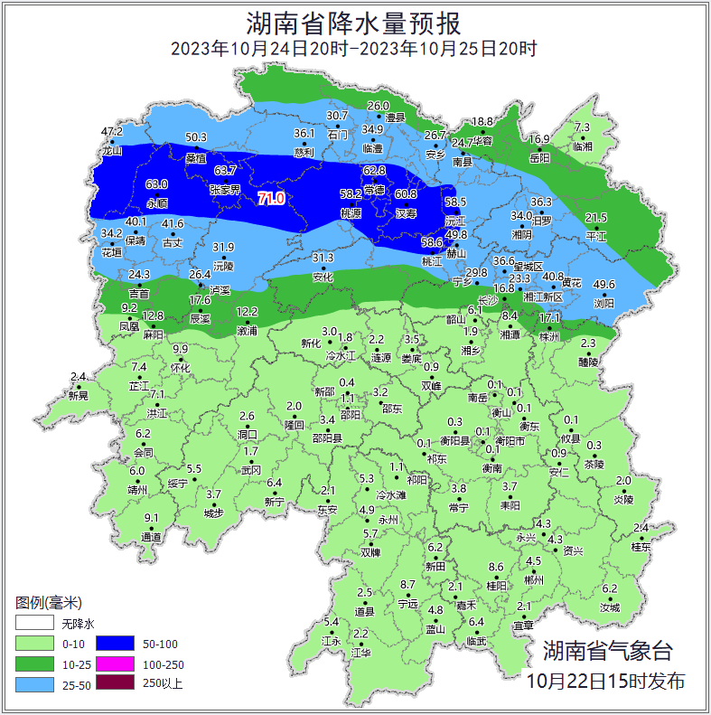 2.注意防范24日晚开始湘北地区较强降雨可能造成的地质灾害、城市内涝等次生灾害。