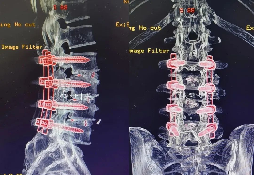 罗小中主任医师、颜学亮副主任医师组织科室医师讨论患者病情后,认为患者神经严重受压,病情严重,需行腰椎后路减压植骨融合内固定术治疗。同时,脊柱外科立即邀请多学科联合会诊,对手术进行全方位评估,从而将手术风险降到最低。在与患者及家属沟通病情后,患者及家属表示理解与支持。