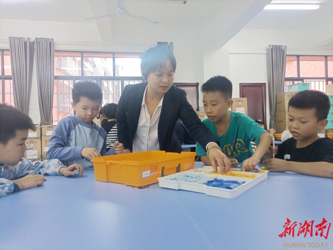 一到下午5点,邵阳市大祥区人工智能教育管理群就热闹起来,各校老师上传的视频和照片里,孩子们积极思考,大胆动手,他们制作的台灯会说话,用积木组建的猫眼睛会闪光……