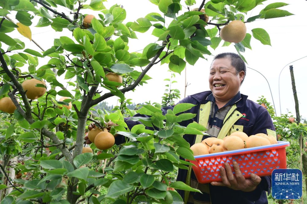 10月11日,村民在贵州省毕节市百里杜鹃管理区普底乡颖川村采收黄梨。新华社发(李华 摄)