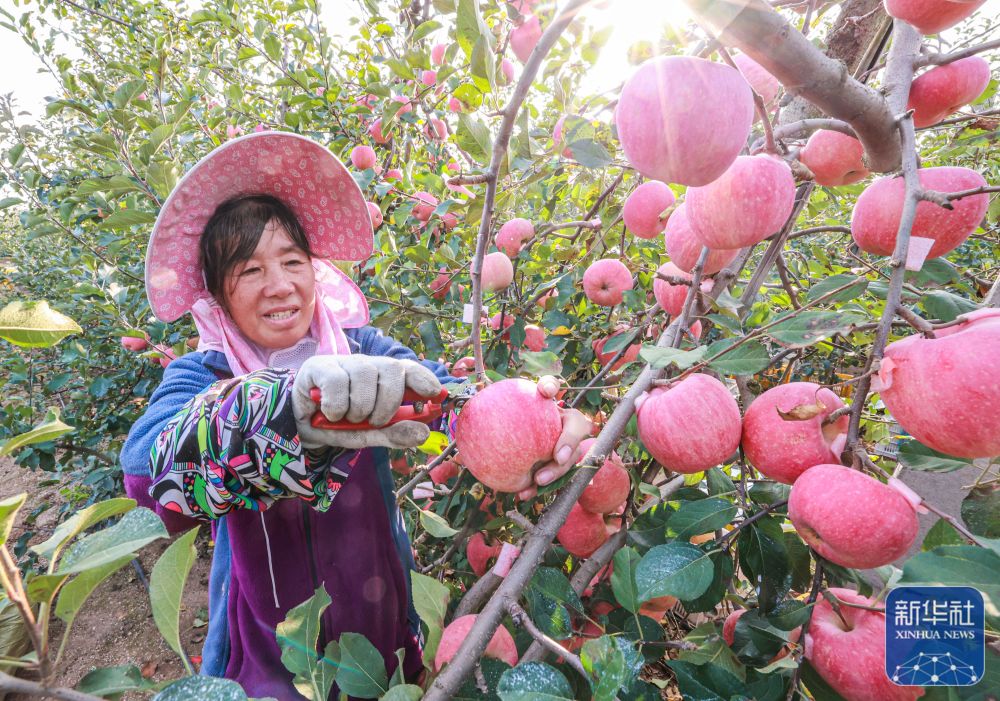 10月24日,果农在山东省荣成市夏庄镇一果园采摘苹果。新华社发(李信君 摄)