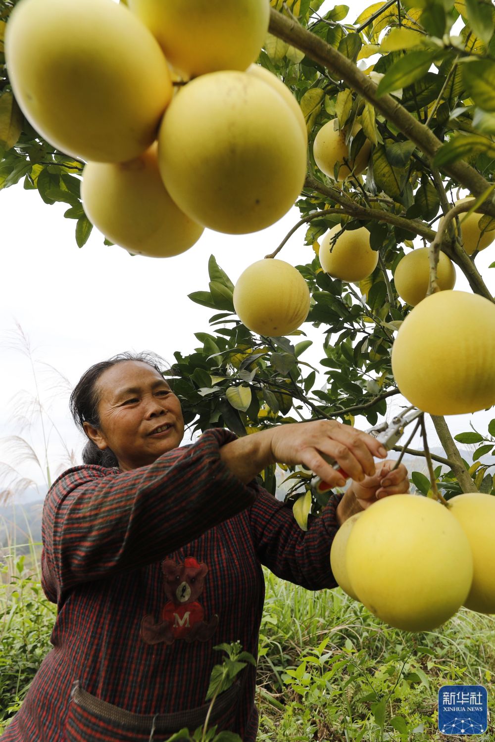 10月24日,村民在贵州省锦屏县茅坪镇红心蜜柚种植基地采摘柚子。新华社发(杨晓海 摄)