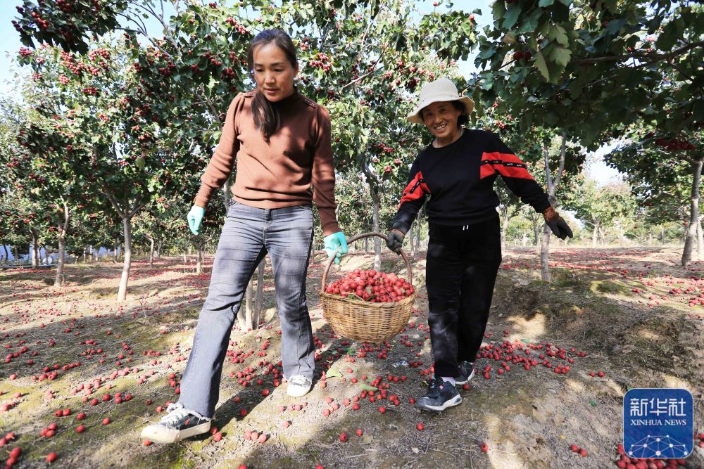 10月24日,甘肃省定西市临洮县玉井镇店子村农民在采摘山楂。新华社发(王克贤 摄)