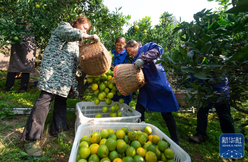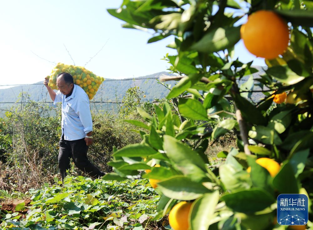 10月24日,湖北省宜昌市秭归县归州镇屈原庙村村民在收获柑橘。新华社发(雷勇 摄)