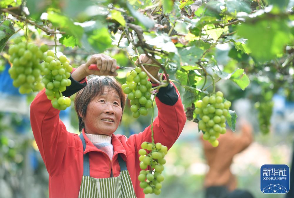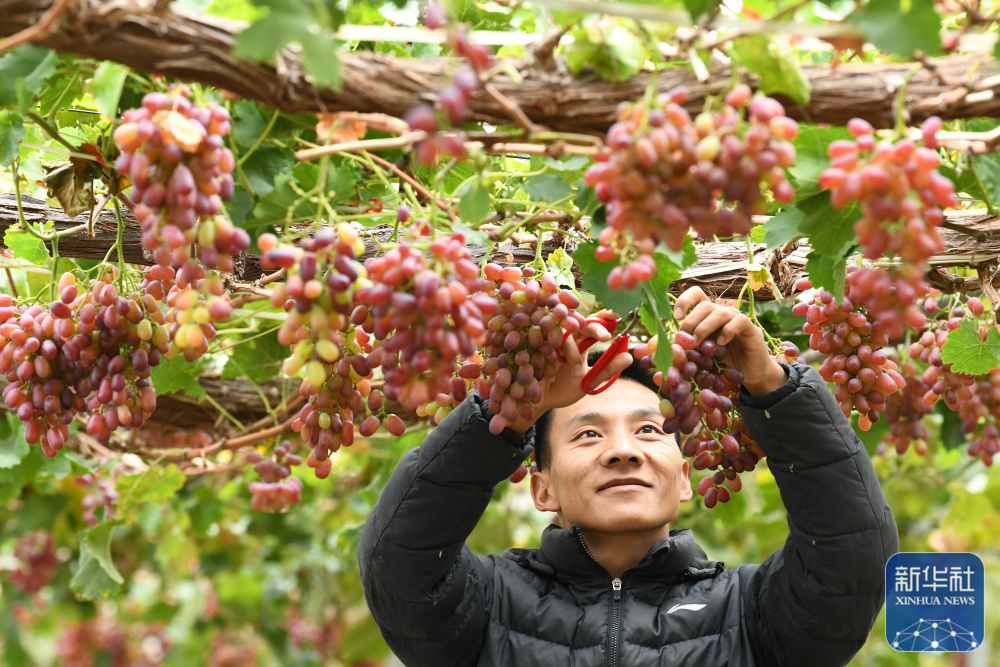 10月24日,果农在云南省丽江市古城区大研街道文智社区的一家葡萄种植基地采摘葡萄。新华社发(赵庆祖 摄)