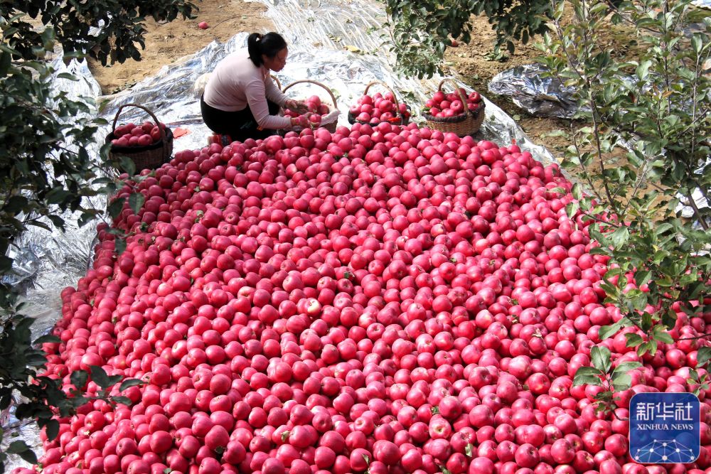 10月24日,在甘肃省平凉市静宁县余湾乡王坪村村民分拣苹果。新华社发(王毅 摄)