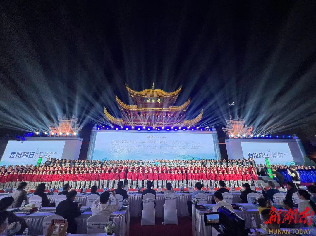 当晚,977名中小学生、各界代表相聚岳阳楼前,吟诵《岳阳楼记》。977年前,范仲淹写下千古雄文《岳阳楼记》。今年8月1日,岳阳市人大常委会决定,将每年农历九月十五日设为“岳阳楼日”。