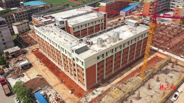 在县委、县政府的高位推动下,项目指挥部迅速成立,组织召开专题会议进行安排部署,坚持问题导向、倒排施工工期,全力以赴推进。2022年12月该项目正式启动,历经9个月,争取省教育厅“徐特立项目”资金2000万元,已投入9000万元,完成教学楼1栋教室40间,学生食堂1栋(可供2500人同时就餐),学生宿舍1栋(可提供2400张床位)等一期工程主体建设。