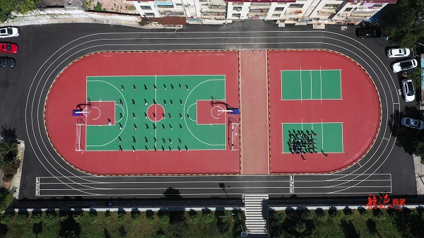 2023年秋季开学第一天,临武县楚江中学的学生们就被学校焕然一新的运动场吸引。经典的红绿白搭配,给学校增添了别样色彩,红色的跑道和绿色操场相映成趣。学生们在崭新的运动场上跑步、做课间操,尽情享受体育运动带来的乐趣。
