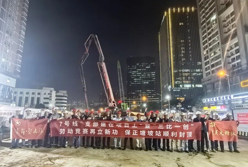 长沙地铁7号线正塘坡路站主体结构封顶现场。