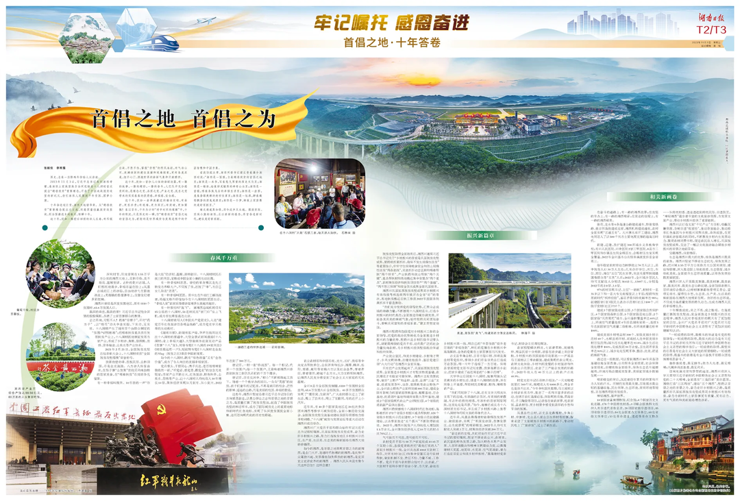 这些年,湘西州坚定沿着习近平总书记指引的方向感恩奋进,以愚公移山之志和首倡之地的首倡之为,高质量打赢了脱贫攻坚战,创造了中国脱贫攻坚的鲜活样本,成为了国际减贫史上的重要地标和新时代红色地标,实现了从深度贫困到全面小康、进而迈向现代化的历史性跨越。