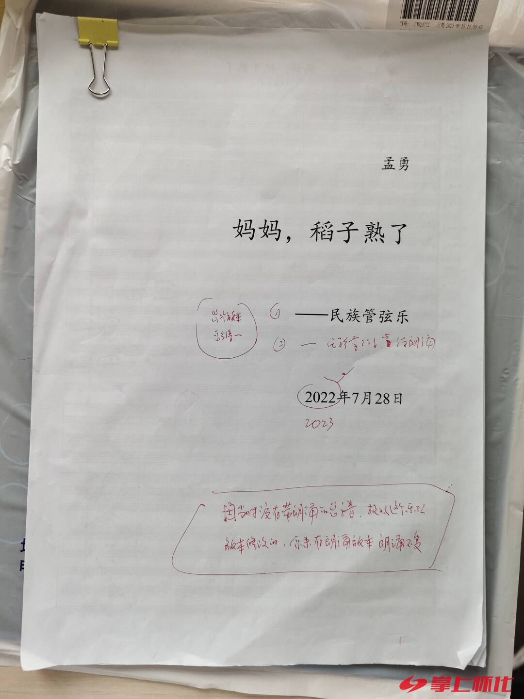 孟勇:怀化举办的“一粒种子 改变世界”原创民族音乐会非常好,是对著名科学家袁隆平先生最好的纪念。袁隆平先生去世的时候,他生前写给妈妈的一封信《妈妈,稻子熟了》在网上很火。我看到省话剧院著名艺术家、国家一级演员王峰在湖南卫视上的朗诵,每听一次我都感动流泪。所以我觉得要办音乐会,这个作品必然会纳入音乐会中来。去年秋后,音乐会原定曲子都创作出来以后,在长沙举办了一场专家研讨会,我作为评委参加了,当时《妈妈,稻子熟了》只是一个朗诵节目,我提出:应该创作一部同题的民族管弦乐作品,和朗诵结合起来,用民族管弦乐的张力和气势,达到更加震撼的艺术效果。大家一致认为这个建议好,并马上邀请我来写,于是就有了这个民族管弦乐作品。