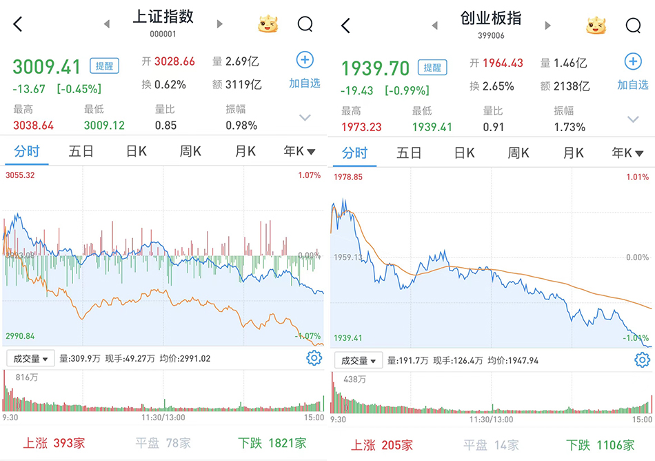 至11月2日收盘,上证综指跌0.45%,报3009.41点;科创50指数跌1.15%,报859.93点;深证成指跌0.94%,报9734.77点;创业板指跌0.99%,报1939.7点。