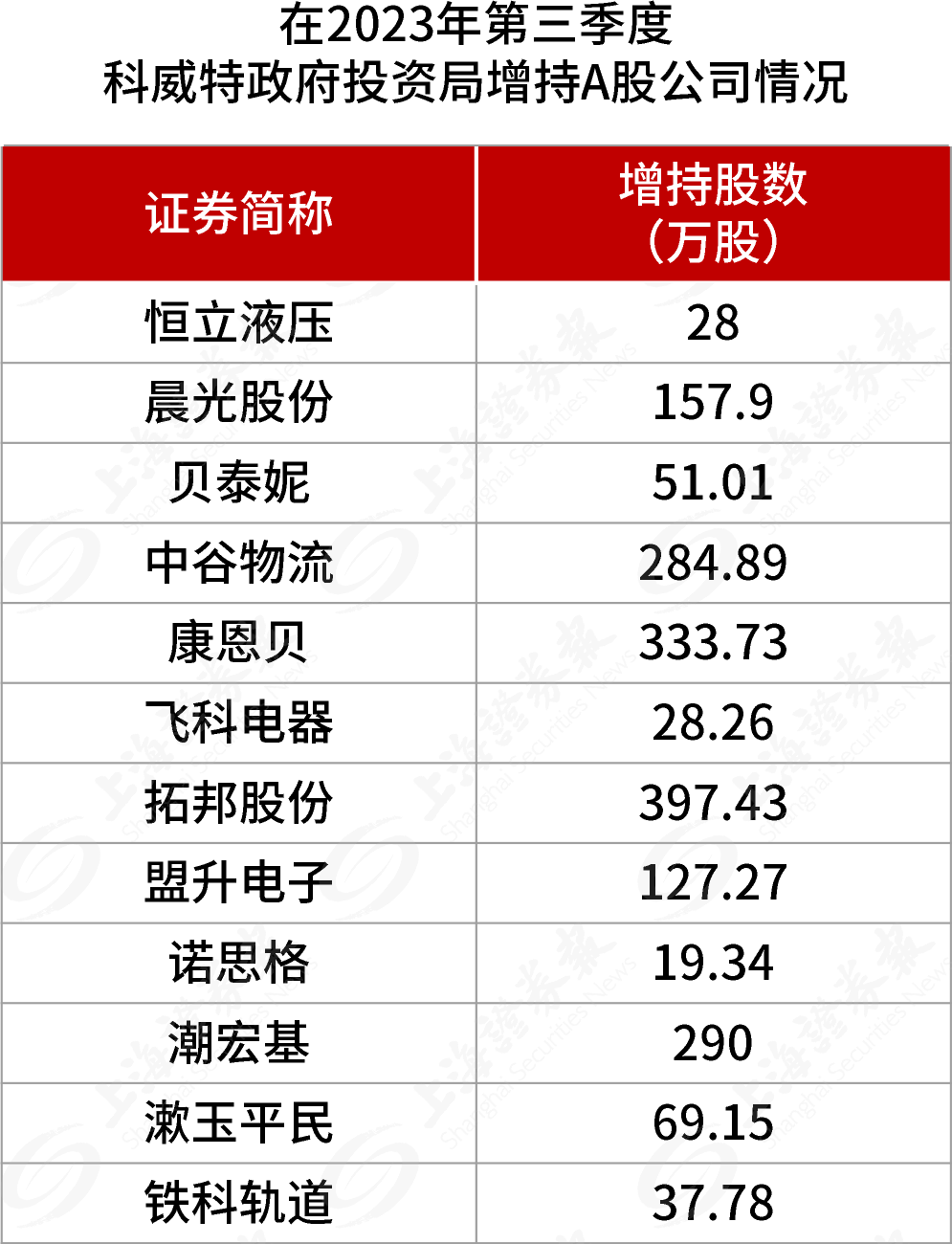 科威特政府投资局增持了12家A股公司。