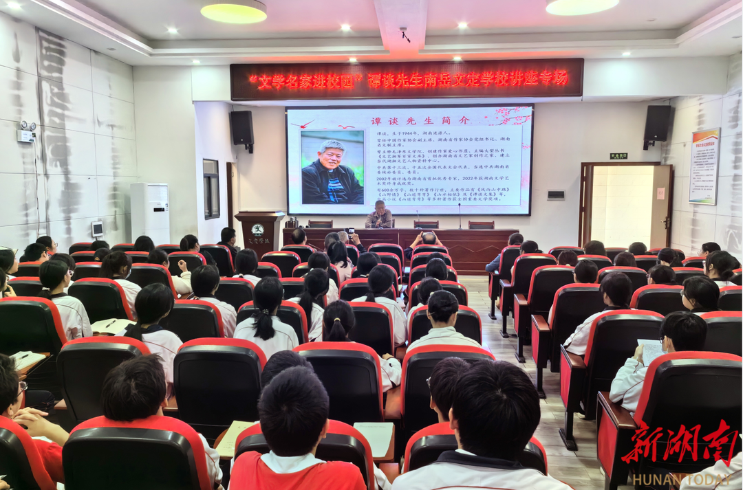 湖南日报·新湖南客户端11月6日讯(记者 刘瀚潞 通讯员 甘建华)近日,“文学名家进校园”南岳站,中国作协原副主席、湖南省文联原主席、国际笔会中国中心副会长谭谈,中国散文学会副会长、陕西省散文学会会长、西北大学现代学院教授陈长吟,分别走进文定实验学校和岳云中学,与青年学子们促膝交谈读书写作经验,鼓励他们放飞青春的梦想,成为对国家有用的栋梁之材。