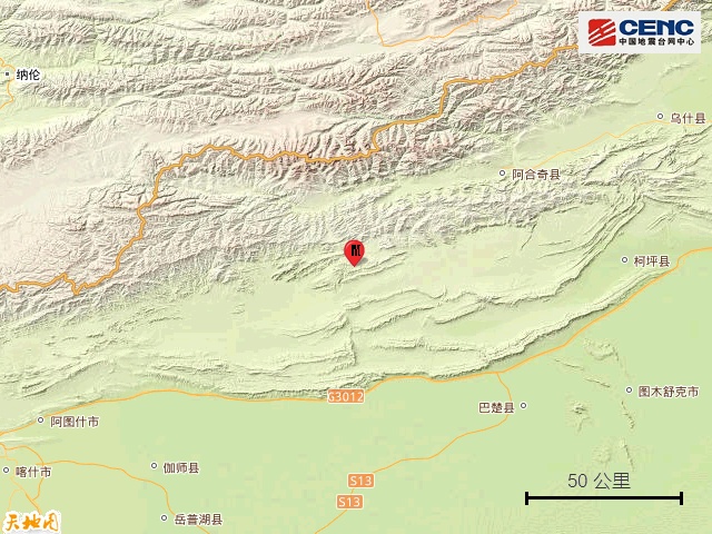 11月8日凌晨,新疆克孜勒苏州连续发生6次地震,最小震级3.2级,最大震级5.4级。