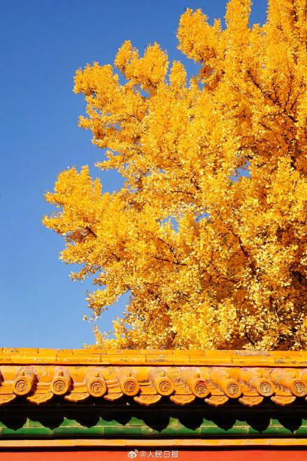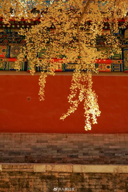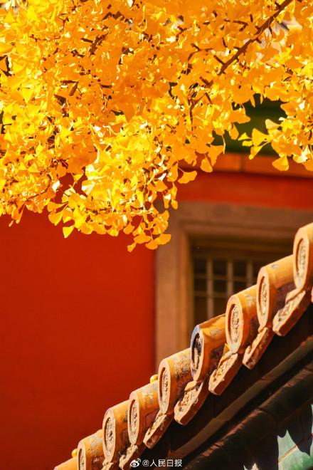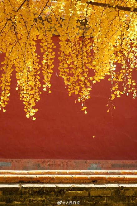 故宫的银杏黄了。一片片金灿灿的银杏叶,在枝头摇曳,与红墙同框点缀着最美秋色。秋日故宫银杏配红墙一起欣赏。