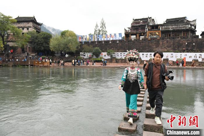 2023年11月10日至11日,中国·凤凰第九届苗族银饰服饰文化节在湖南凤凰古城举办,来自全国各地的1000余名苗族民众着盛装亮相。对苗族文化着迷的塔季娅娜也穿着苗服走上街头参加这场文化盛宴。