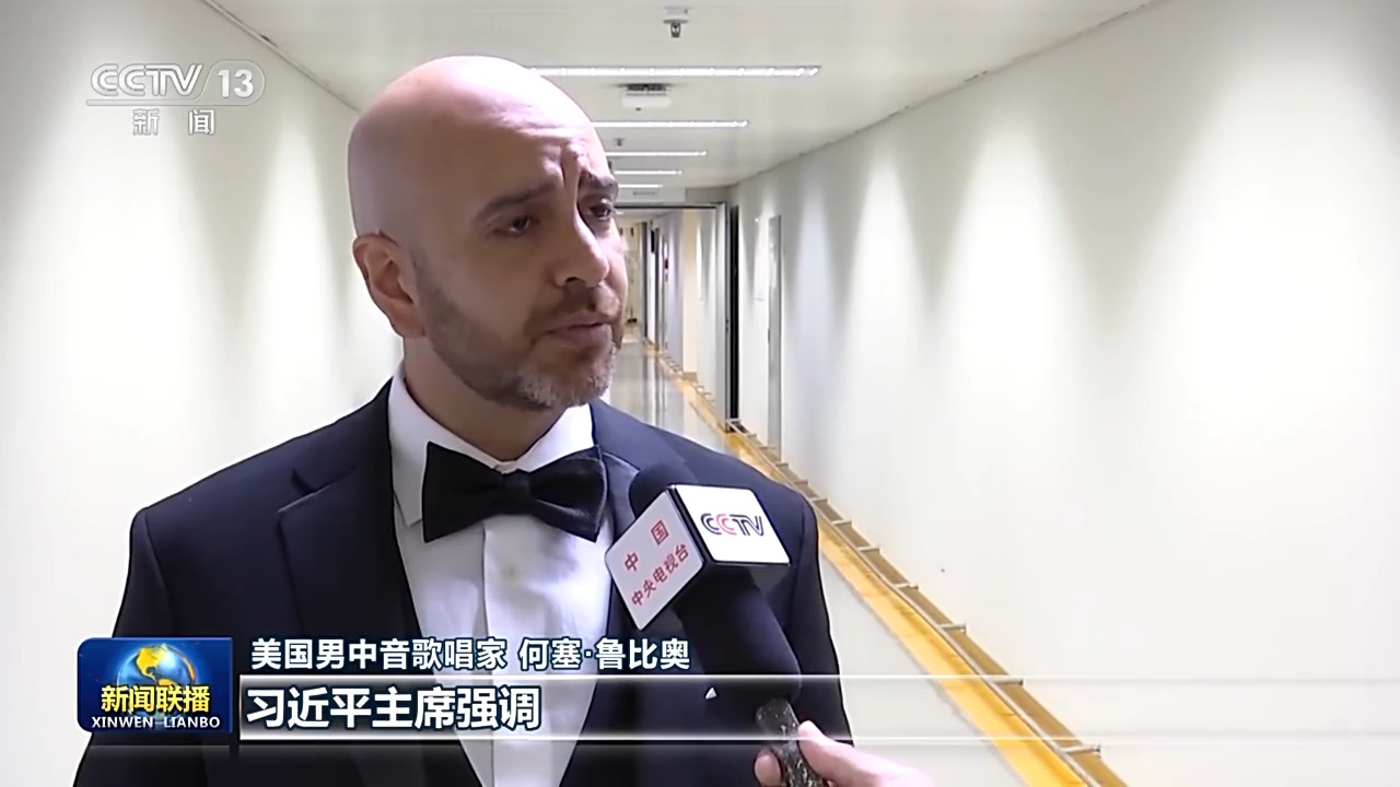 美国男中音歌唱家 何塞·鲁比奥:习近平主席强调,音乐跨越国界。在我看来,音乐就是我们的共同语言。我们用中文演唱诗词时,音乐成了我们了解彼此的桥梁,也成了不同文化互尊互鉴、相互理解的生动诠释。