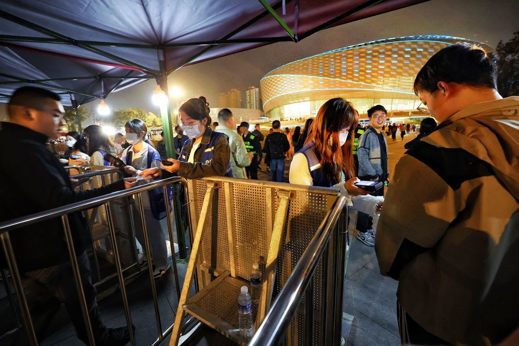 11月5日,张学友60+巡回演唱会成都站演出开始前,歌迷排队入场。