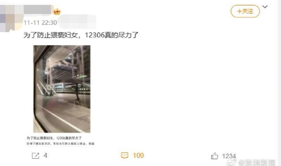 近日,一则题为“为了防止猥亵妇女,12306真的尽力了”的网帖引发热议。