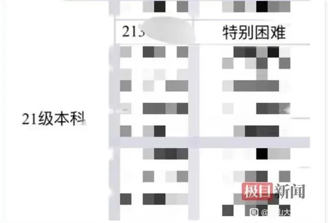 帖文中,爆料网友公开了这名获得助学金学生的学号信息,显示这名中山大学2021级本科生属于“特别困难”的类别。