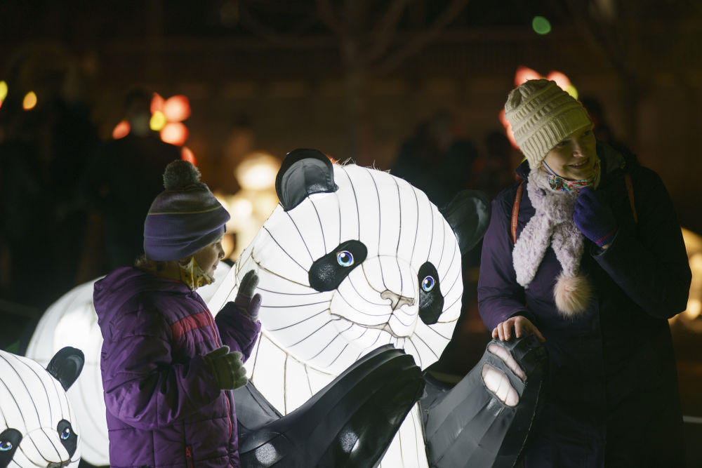 2022年1月29日,观众在美国华盛顿的肯尼迪表演艺术中心参观农历新年彩灯展览。新华社发(沈霆 摄)