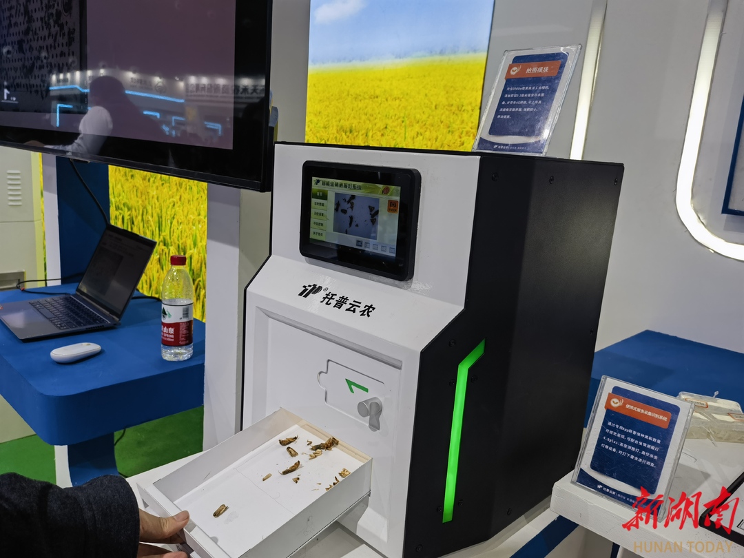 在浙江托普云农科技股份有限公司的展位,大屏幕上清晰地展示出虫子的照片、名字、条数。