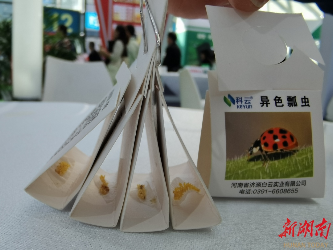 柜台工作人员介绍,异色瓢虫是蚜虫、粉虱、叶螨等的天敌,小花蝽是蓟马、蚜虫、粉虱等的天敌……展位上,瓢虫、赤眼蜂、捕食螨等各种虫子,成了热卖商品。