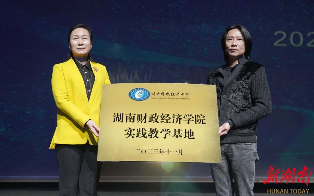 仪式上,苏玲代表学校向《天宠湖南》授予“湖南财政经济学院实践教学基地”牌匾。
