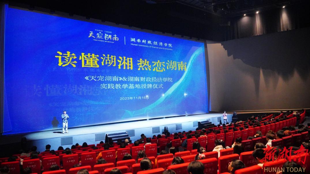 11月16日下午,湖南财政经济学院与《天宠湖南》在天宠湖南铜官窑剧场举行实践教学基地授牌仪式。学校党委副书记苏玲,长沙红品文化有限公司总经理、《天宠湖南》策划、艺术总监、出品人之一杨吉红,以及学校人文与艺术学院主要负责人、教师代表及2023级全体学生共600余人参加授牌仪式。